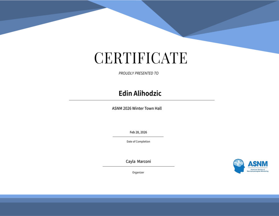 Diploma in Surgical Neurophysiology im Jahr 2020 bei Faisal R. Jahangiri, MD, CNIM, D.ABNM FASNM, FASET, Vice President of Clinical Affairs